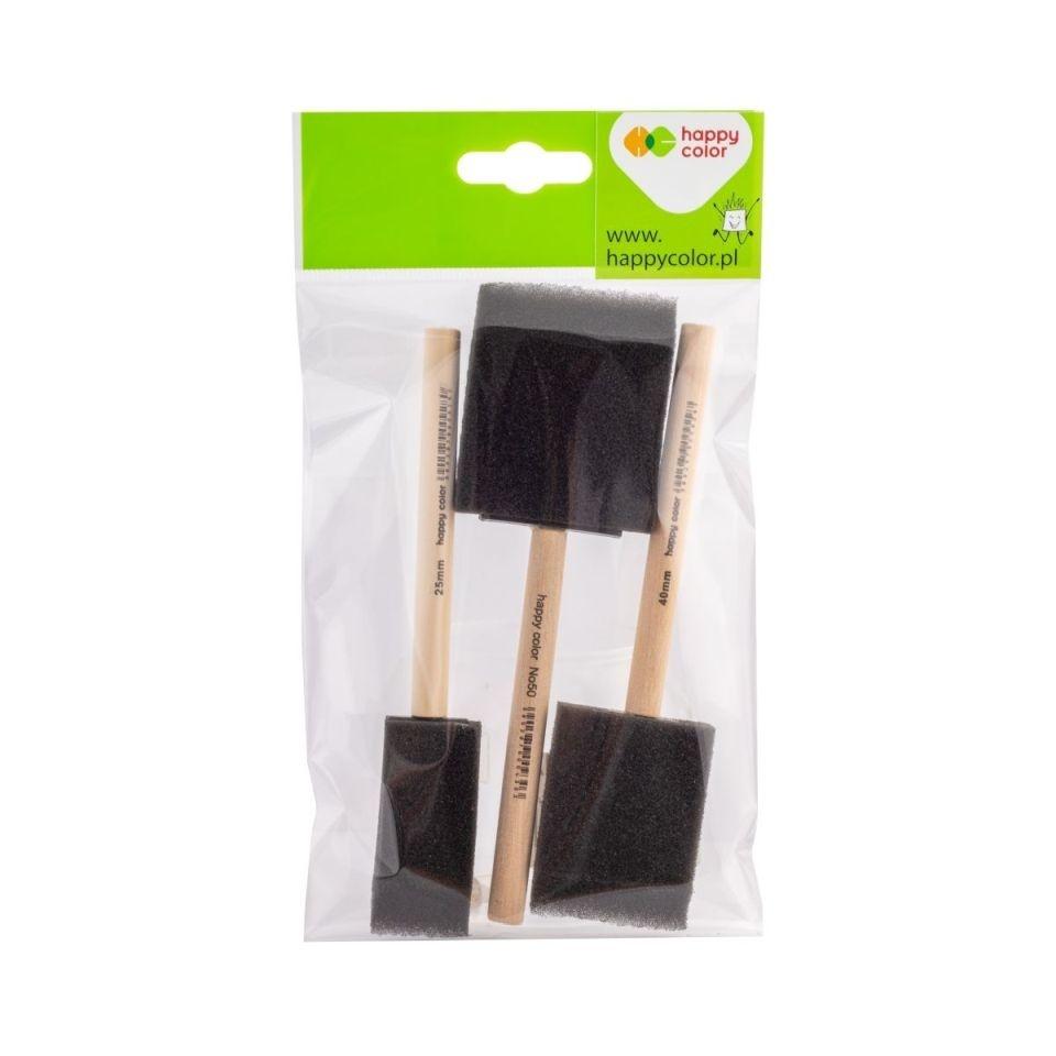 Pędzel gąbkowy płaski 3szt HAPPY COLOR