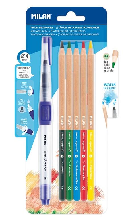 Pędzel wodny MILAN 4mm + kredek akwarelowych