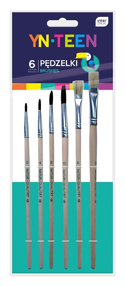 Opis produktuZasady bezpieczeństwaZestaw 6 drewnianych pędzelków o różnych szerokościach i kształtach końcówek. x
