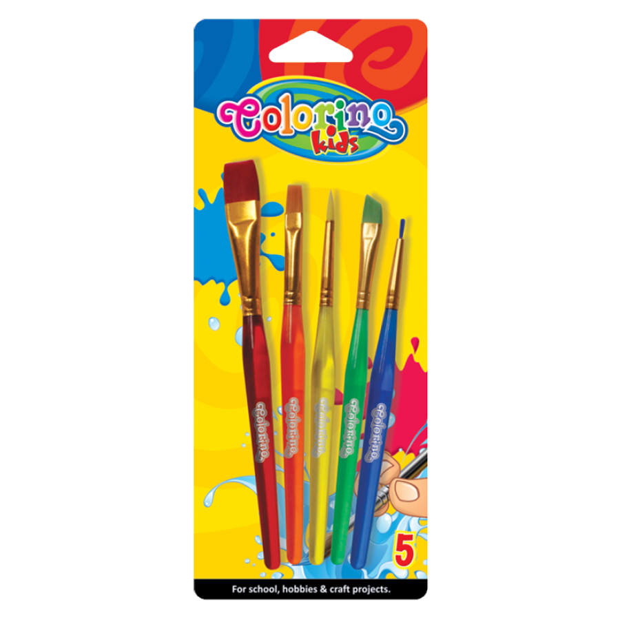 Komplet pędzli JUMBO z kolorowa akrylową rączką. W zestawie znajdują się pędzle o 5 grubościach. Kolor włosia dobrany jest do koloru rączki.