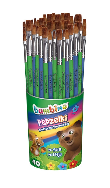 Praktyczny i uniwersalny zestaw pędzelków szkolnych w rozmiarach: 4, 8, 16. Pędzelki idealnie rozprowadzają zarówno farby akwarelowe jak i plakatowe, ale można je też stosować do aplikacji kleju. Licencja - BAMBINO Ilość sztuk w zestawie - 40
