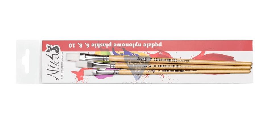Pędzle nylonowe płaskie Niki 4/ 6+8+10