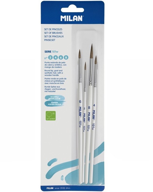 Pędzle okrągłe z włosia koziego Milan seria 101 4 sztuki na blistrze
