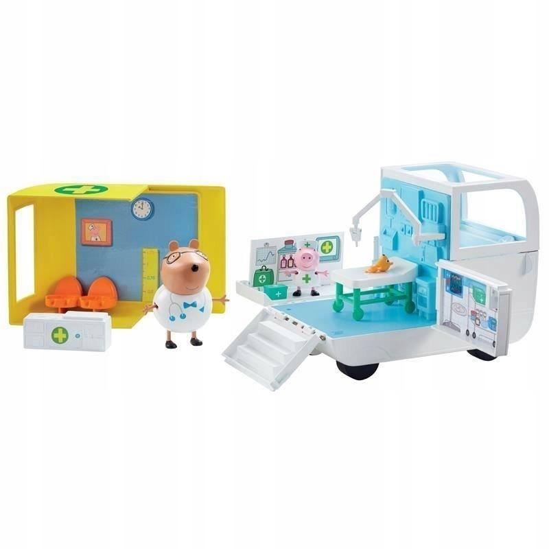 Świnka Peppa zawsze marzyła o tym, by zostać pielęgniarką i pomagać chorym! Postanowiła przywdziać fartuszek i czepek pielęgniarski z zielonym krzyżykiem i pomagać doktorowi w jego Mobilnym Centrum Medycznym. Biały ambulans z żółtym dachem jest rozkładany, dzięki czemu stwarza dodatkowe możliwości zabawy. Obrócony na bok dach tworzy poczekalnię dla pacjentów z dwoma fotelami, zegarem, metrem i obrazkiem na ścianie. Pozbawiony dachu pojazd staje się gabinetem lekarskim. Jest tu łóżko dla chorego, apteczka pierwszej pomocy, rentgen oraz biała szafka na narzędzia lekarskie i sprzęt, która może służyć jako lada na recepcji. Z przodu ambulansu znajdują się dwa fotele dla kierowcy i pasażera.