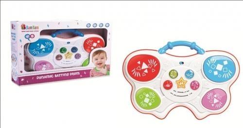 PERKUSJA MALUCHA to zabawka muzyczna od 12 miesiąca życia.Perkusja to zabawka edukacyjna wykonana z wysokiej jakości plastiku, w intensywnych, bajecznych kolorach z wieloma interaktywnymi funkcjami. Kolorowe, migoczące przyciski, wygrywają różne melodie, dźwięki, w tym zabawne efekty dźwiękowe, instrumentów jak bębna czy perkusji oraz odgłosy zwierzątek zapewniając długą zabawę oraz stymulując rozwój funkcji poznawczych dziecka, rozwój zmysłu słuchu, wzroku, dotyku i zdolności manualnych. Zabawka umożliwia kształtowanie poczucia rytmu i muzykalności malca.