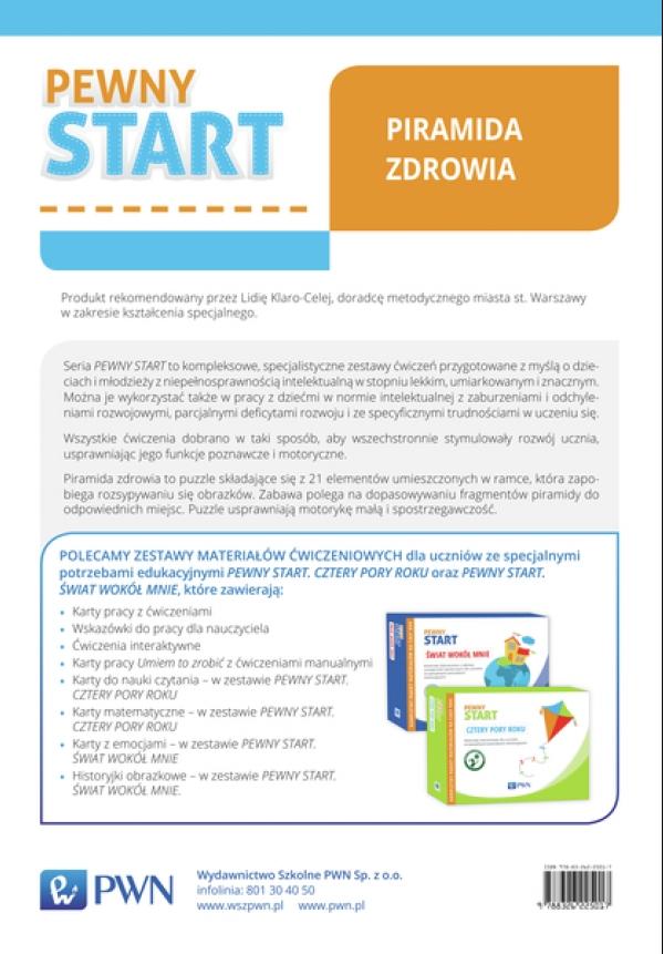 Piramida zdrowia to puzzle składające się z 21 elementów umieszczonych w ramce, która zapobiega rozsypywaniu się obrazków. Zabawa polega na dopasowywaniu fragmentów piramidy do odpowiednich miejsc. Puzzle usprawniają motorykę małą i spostrzegawczość.