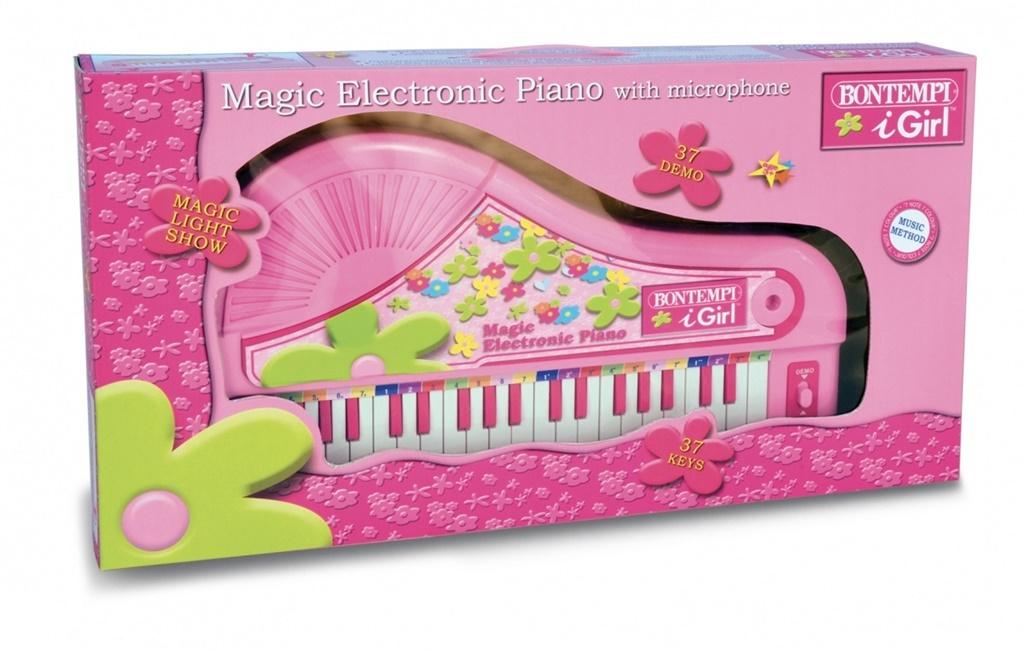 Pianino elektroniczne z mikrofonem stworzone przez włoską firmę Bontempi, zabawka która sprawi frajdę małemu instrumentaliście. Pianino zawiera: 37 klawiszy, 37 melodii, efekty świetlne, mikrofon.