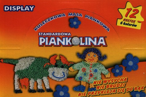 Piankolina to kreatywna zabawka w postaci lekkiej i miękkiej kuleczkowej masy plastycznej. Ponieważ masa jest miękka bez problemu można z niej modelować dowolne kształty. Każde dziecko kierując się wyobrażnią może ulepić z Piankoliny figury płaskie, a także przestrzenne. Piankolina nie brudzi, nigdy nie wysycha, nie przykleja się ani do rąk ani do ubrania, a jej kolorowe kostki łatwo się ze sobą łączą. Rozwija wyobraźnię, zdolności manualne, zdolności twórcze, wspomaga rozwój koordynacji wzrokowo-ruchowej dziecka. Bardzo żywe barwy Piankoliny zachęcają najmłodszych do aktywnej zabawy, w trakcie której dzieci poznają kolory, uczą się liczyć oraz tworzą najróżniejsze kształty. Jest to zabawka zarówno dla chłopców jak i dla dziewczynek. Dla wszystkich dzieci powyżej 3 lat. Zanim zaczniesz modelować ugniataj ją i ściskaj.