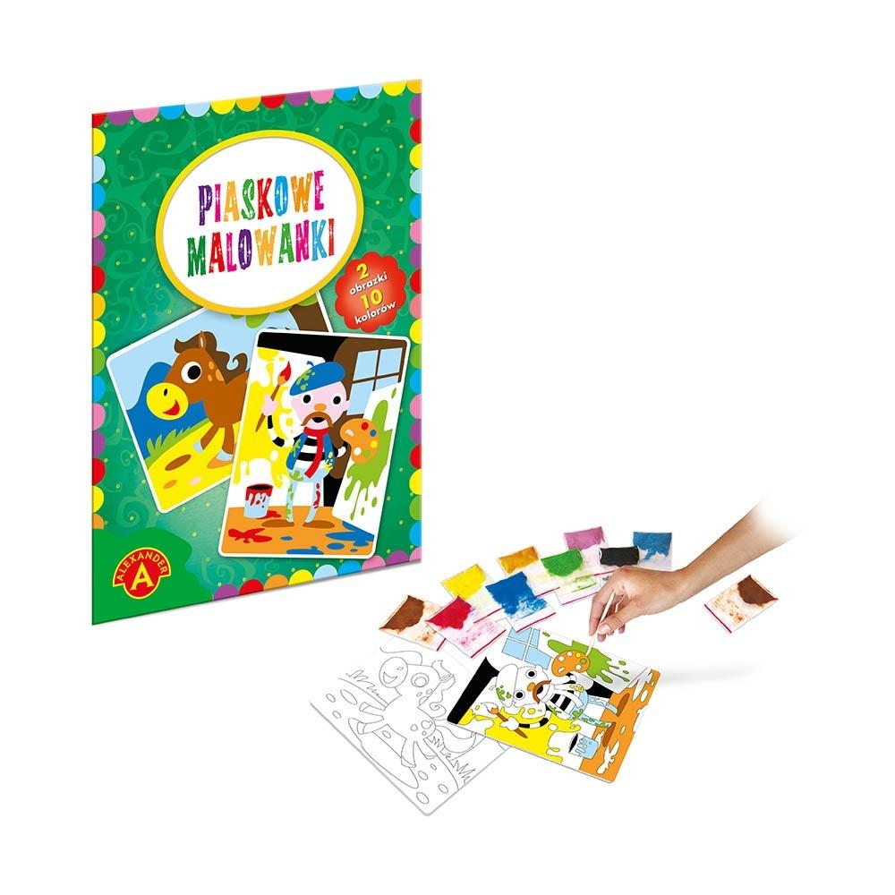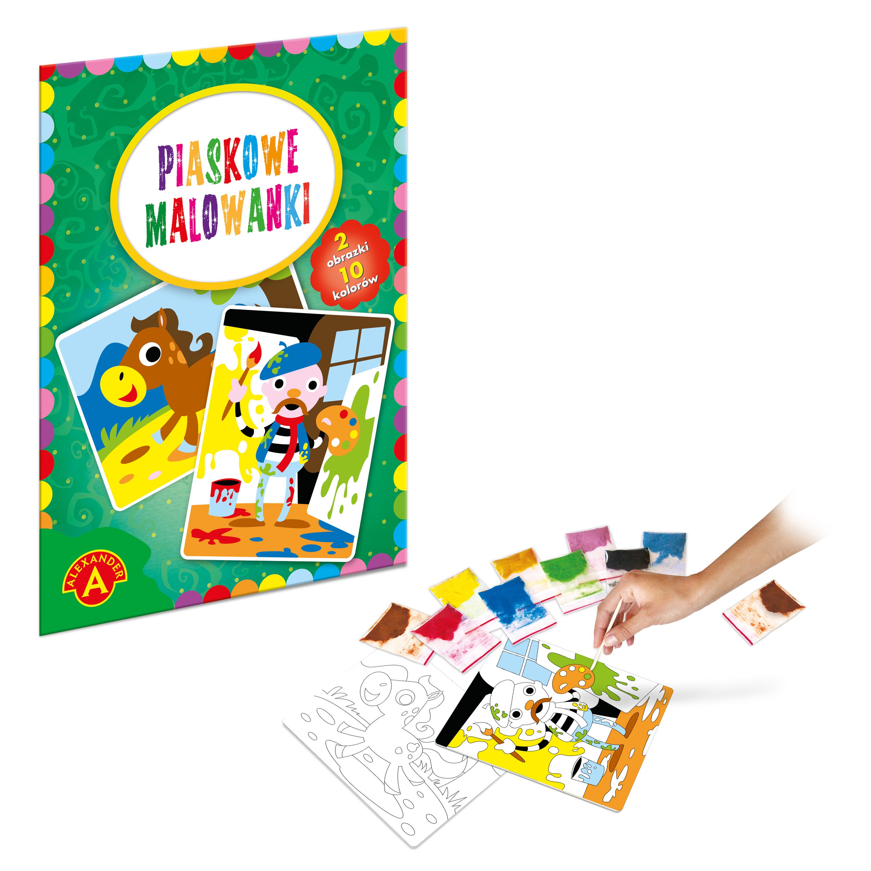 Opis produktuZasady bezpieczeństwaUwielbiana przez dzieci, artystyczna zabawa malowania piaskiem, polegająca na odsłanianiu kolejno poszczególnych, naciętych elementów obrazka, tak by odkryć klejącą powierzchnię. Odsłonięte elementy posypuje się piaskiem, w kolorze zgodnym ze wzorem lub według własnej wyobraźni, tworząc piękną ilustrację.