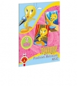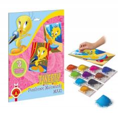 Zostań małym artystą wraz z Tweetym. Zabawa polega na odsłanianiu kolejnych, naciętych, elementów obrazka tak, by odkryć klejącą powierzchnię wybranego fragmentu. Następnie posyp go piaskiem w odpowiednim kolorze i gotowe. Twoja własna piaskowa malowanka.