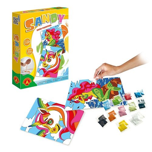 Opis produktuZasady bezpieczeństwaUwielbiana przez dzieci, artystyczna zabawa malowania piaskiem, polegająca na odsłanianiu kolejno poszczególnych, naciętych elementów obrazka, tak by odkryć klejącą powierzchnię. Odsłonięte elementy posypuje się piaskiem, w kolorze zgodnym ze wzorem lub według własnej wyobraźni, tworząc piękną ilustrację.