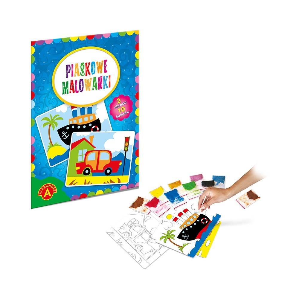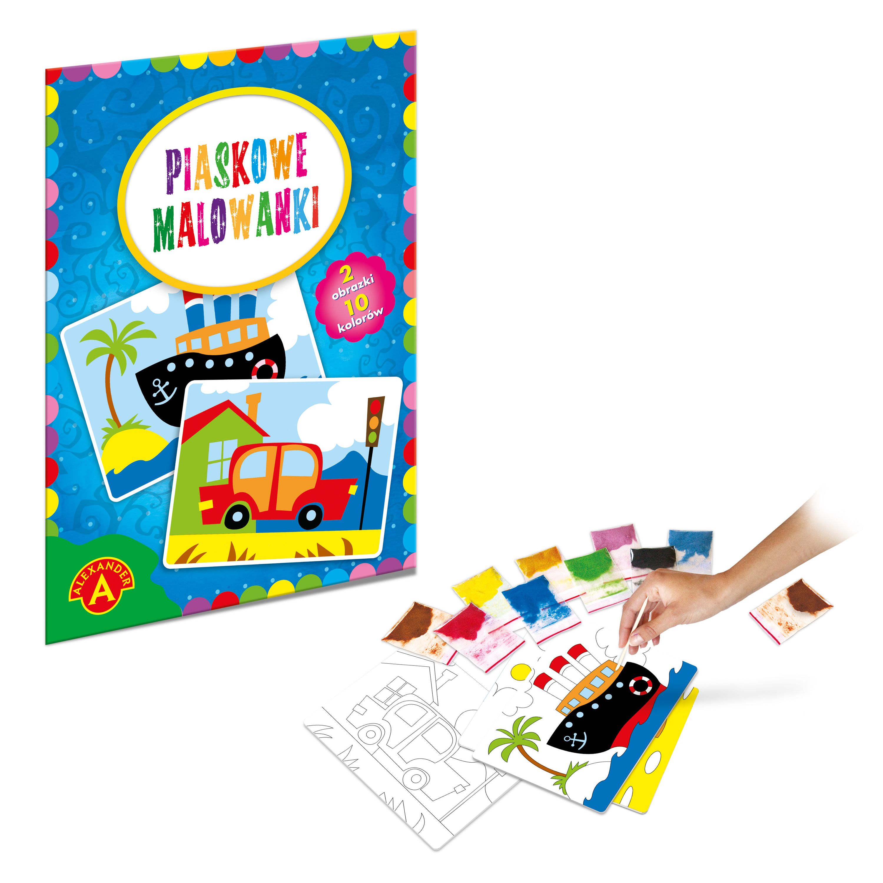 Opis produktuZasady bezpieczeństwaUwielbiana przez dzieci, artystyczna zabawa malowania piaskiem, polegająca na odsłanianiu kolejno poszczególnych, naciętych elementów obrazka, tak by odkryć klejącą powierzchnię. Odsłonięte elementy posypuje się piaskiem, w kolorze zgodnym ze wzorem lub według własnej wyobraźni, tworząc piękną ilustrację.
