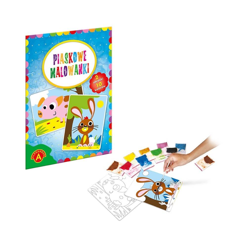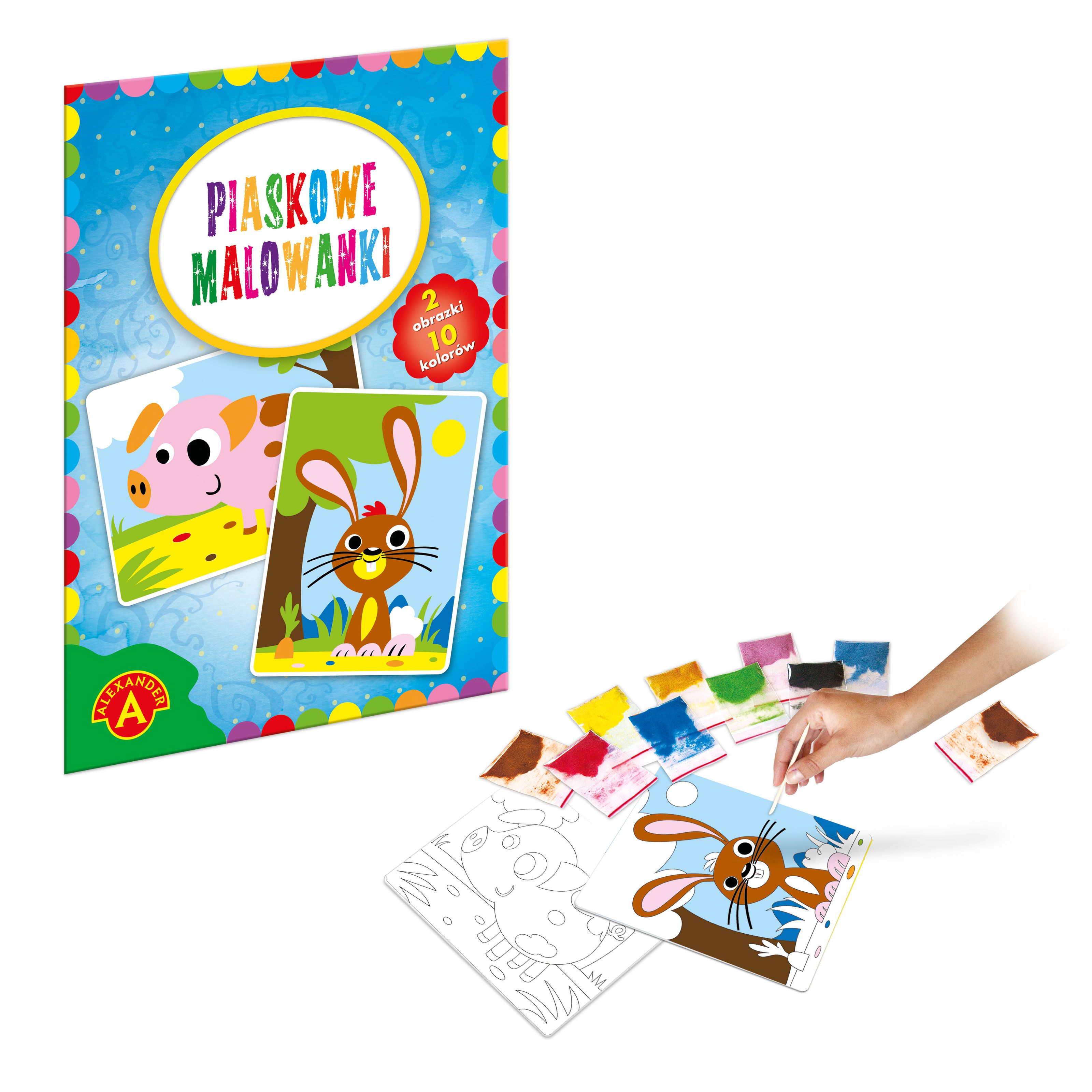 Opis produktuZasady bezpieczeństwaUwielbiana przez dzieci, artystyczna zabawa malowania piaskiem, polegająca na odsłanianiu kolejno poszczególnych, naciętych elementów obrazka, tak by odkryć klejącą powierzchnię. Odsłonięte elementy posypuje się piaskiem, w kolorze zgodnym ze wzorem lub według własnej wyobraźni, tworząc piękną ilustrację. Jak Piaskowe Malowanki stymulują rozwój dziecka?