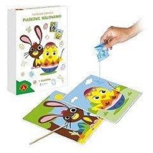 Opis produktuZasady bezpieczeństwaPiaskowe Malowanki WIELKANOCNY KURCZACZEK I ZAJĄCZEK Kreatywna zabawa pełna kolorów! Wielkanoc to czas radości, kolorów i wiosennej zabawy! Teraz Twoje dziecko może stworzyć aż dwa świąteczne obrazki uroczy wizerunek wielkanocnego kurczaczka i zajączka, korzystając z 22 kolorowych piasków. To podwójna dawka kreatywności, która rozwija wyobraźnię i zdolności manualne w niezwykle angażujący sposób. Więcej kolorów, więcej zabawy! Dwa obrazki w formacie A5 to jeszcze więcej twórczych możliwości! Wystarczy odsłaniać kolejne fragmenty samoprzylepnych szablonów i posypywać je kolorowym piaskiem zgodnie ze wzorem lub według własnej wyobraźni. To zabawa, która daje dziecku poczucie satysfakcji i pozwala mu cieszyć się efektami swojej pracy. Rozwój poprzez twórcze eksperymenty! Malowanie piaskiem to doskonały sposób na rozwijanie motoryki małej, precyzji ruchów i koordynacji wzrokowo-ruchowej. Pomaga także w koncentracji, uczy cierpliwości i wspiera rozwój integracji sensorycznej. To nie tylko świetna zabawa, ale także wartościowa aktywność edukacyjna. Ekologiczne opakowanie, troska o planetę! Piaskowe Malowanki to kreatywna zabawa, która idzie w parze z troską o środowisko. Produkt został zapakowany w ekologiczne opakowanie, zużywające mniej papieru. Podaruj dziecku wyjątkową, podwójną dawkę radości i kreatywności! Piaskowe Malowanki Wielkanocny Kurczaczek i Zajączek to idealny sposób na twórcze spędzenie wielkanocnego czasu. Idealny prezent na wielkanocny upominek w dobrej cenie!