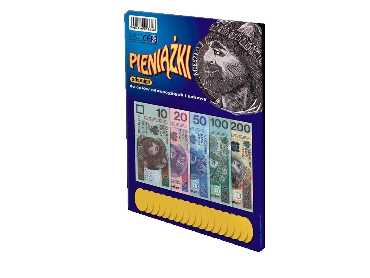 Pieniążki to zestaw banknotów o nominałach: 10, 20, 50, 100 i 200 złotych. Dzięki banknotom maluszek będzie mógł na przykład pobawić się w sklep, w bank, lub dokonywać pierwszych finansowych inwestycji.