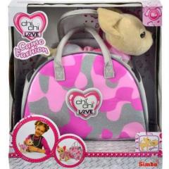 Modny piesek w różowym stroju moro, z torebką i obrożą - bransoletką dla dziewczynki