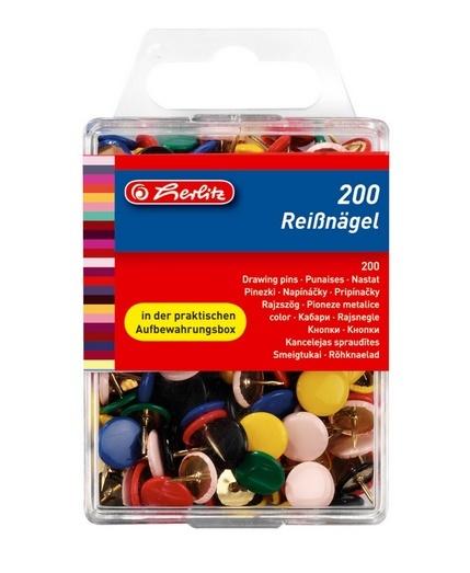Pinezki metalowe w praktycznych plastikowych pudełkach. Każde opakowanie zawiera 200 sztuk pinezek.