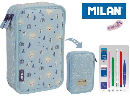 Piórnik MILAN 2-poziomowy z wyposażeniem z kolekcji BERRYWOOD w niebieskiej kolorystyce.