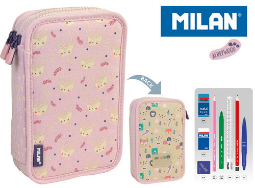 Piórnik MILAN 2-poziomowy z wyposażeniem z kolekcji BERRYWOOD w różowej kolorystyce.