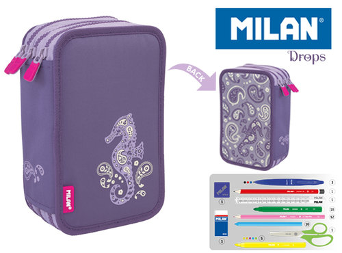 Piórnik MILAN 3-poziomowy z wyposażeniem z kolekcji DROPS. Idealny do domu lub szkoły.