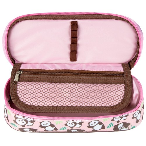 Wewnętrzna klapka posiada gumkę na 5 sztuk przyborów do pisania, dodatkowo w piórniku znajduje się klapka z gumką na 4 sztuki przyborów oraz kieszonką z siateczki zapinaną na zamek.