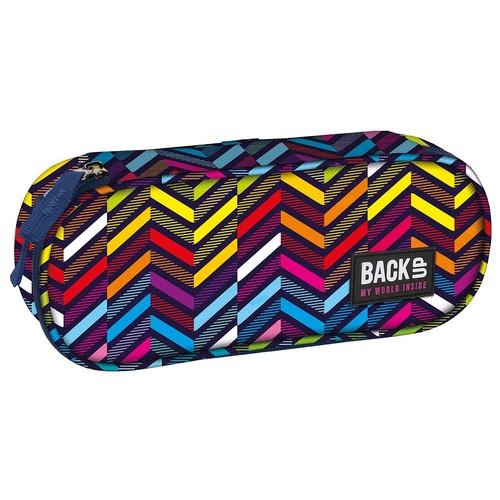 Piórnik BackUP model A 10 to wzór o przestrzennym kształcie kolumn ułożonych z różnokolorowych klocków, układających się w jodełkę, tworzących wielobarwną i innowacyjną mozaikę.