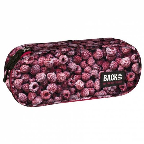 Piórnik BackUP model A 30 niekonwencjonalny wzór z motywem mrożonych malin to smak lata i lodów malinowych.