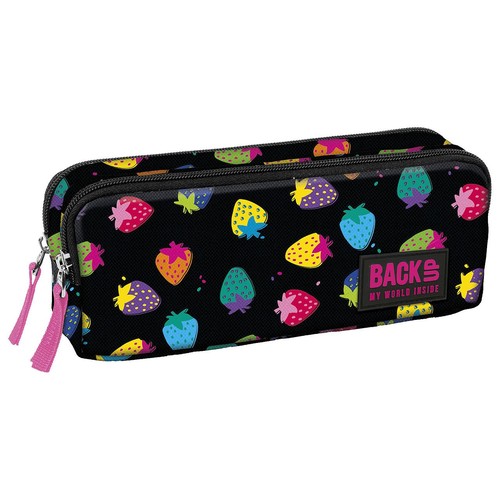 Piórnik BackUP model B 05 w inspirowane twórczością Andy'ego Warhola truskawki w intensywnych barwach na czarnym tle. Piórnik dla tych, którzy kochają słodycz lata i intensywne kolory. Wyposażenie: