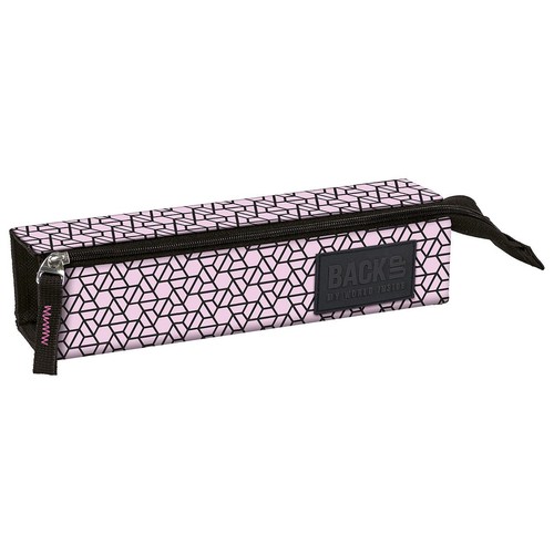 Piórnik BackUP model C 02 w ciekawe geometryczne wzory, pastelowy jasny róż stonowano czernią.