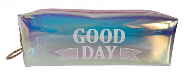 Piórnik glossy mieni się pastelowymi kolorami. Napisem GOOD DAY pozytywnie nastraja na każdy dzień. Przezroczysty materiał pozwala łatwo zlokalizować potrzebne rzeczy w środku. Zamek błyskawiczny zakończony jest kółkiem do przyczepienia gadżetów. Może być wykorzystany także jako mini kosmetyczka, a plastykowy materiał ochroni zawartość przed zalaniem w łazience.