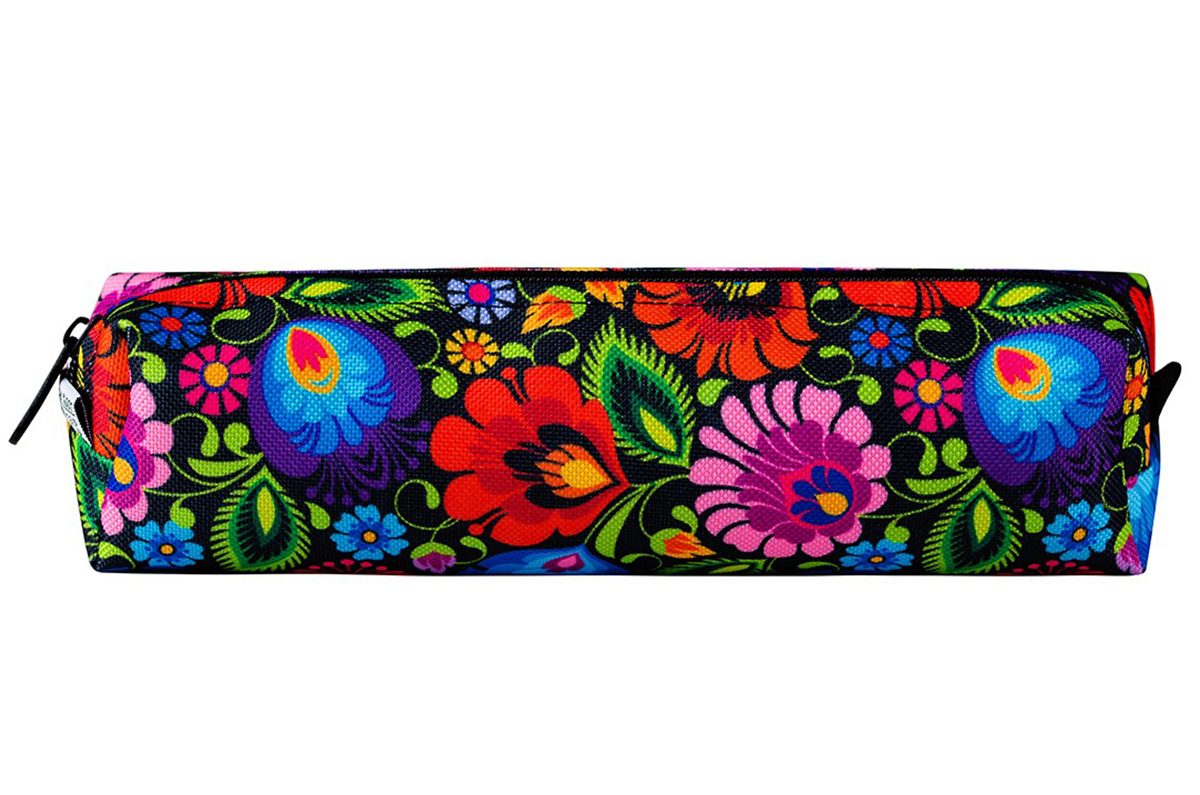 Piórnik z motywem łowickich kwiatów z wycinanki