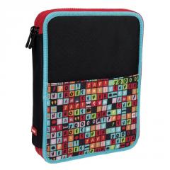 Piórnik MILAN 2-poziomowy duży z wyposażeniem z kolekcji SUPER HEROES nadrukiem słów/liter.