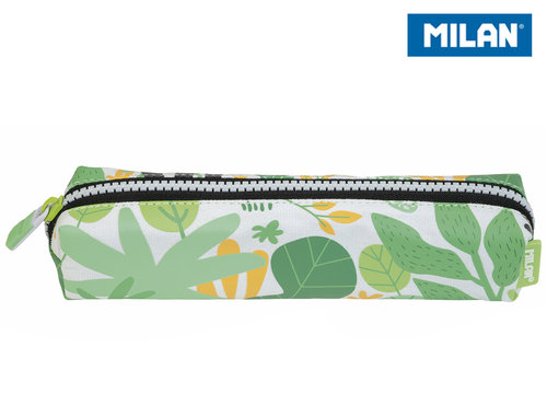 Piórnik MILAN mini kwadratowy z kolekcji Hide & Seek zapinany na suwak w kolorze zielono-żółtym. Materiał: bawełniana strona zewnętrzna i podszewka z poliestru. Wymiary: wymiary: 20,5 x 4,5 x 5 cm.