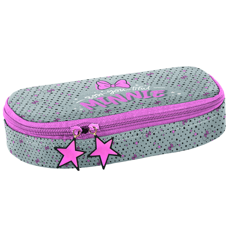 Piórnik - przybornik na dodatkowe akcesoria szkolne. Wewnątrz klapka z gumkami do ołowków i długopisów z jednej strony oraz z kieszonką na zamek z siatki z drugiej.