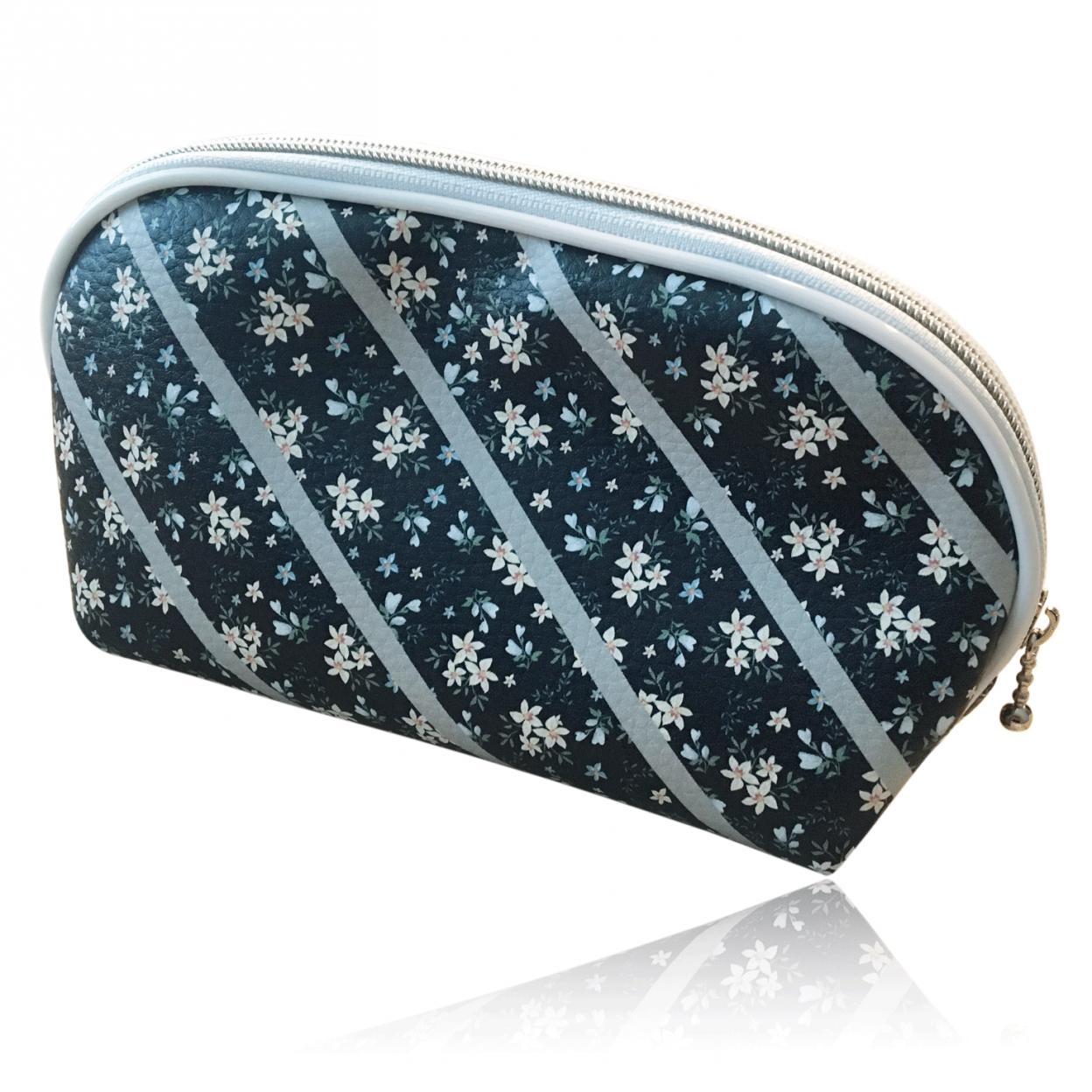 Piórnik owal/kosmetyczka kwiatki granat PO-14