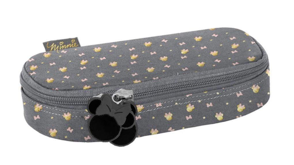Piórnik Minnie Gold. Wygodny, jednokomorowy piórnik bez trudu pomieści najważniejsze szkolne akcesoria. Wewnątrz znajduje się klapka, na której z jednej strony są uchwyty na ołowki, długopisy czy inne przybory piśmiennicze, z drugiej funkcjonalna kieszonka na zamek z siatki. Stanowi świetny dodatek do klasycznych piórników, które nie pomieszczą dodatkowych przyborów, takich jak temperówka, klej, cyrkiel, korektor czy markery. W Paso staramy się, aby nasze produkty były niezwykle poręczne i uniwersalne. Ten piórnik sprawi, że wszystko będzie znajdowało się zawsze na swoim miejscu.