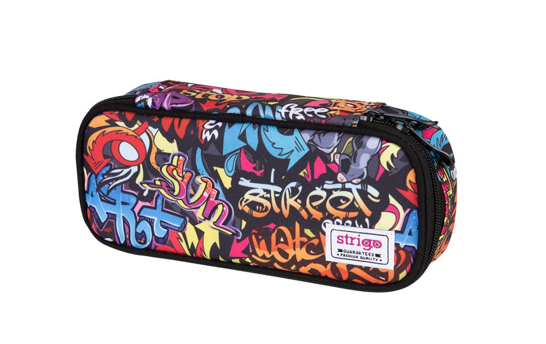 Pojemny piórnik typu prostokąt, z kolekcji Comic. Wykonany z wysokiej jakości materiału z młodzieżowym motywem graffiti.