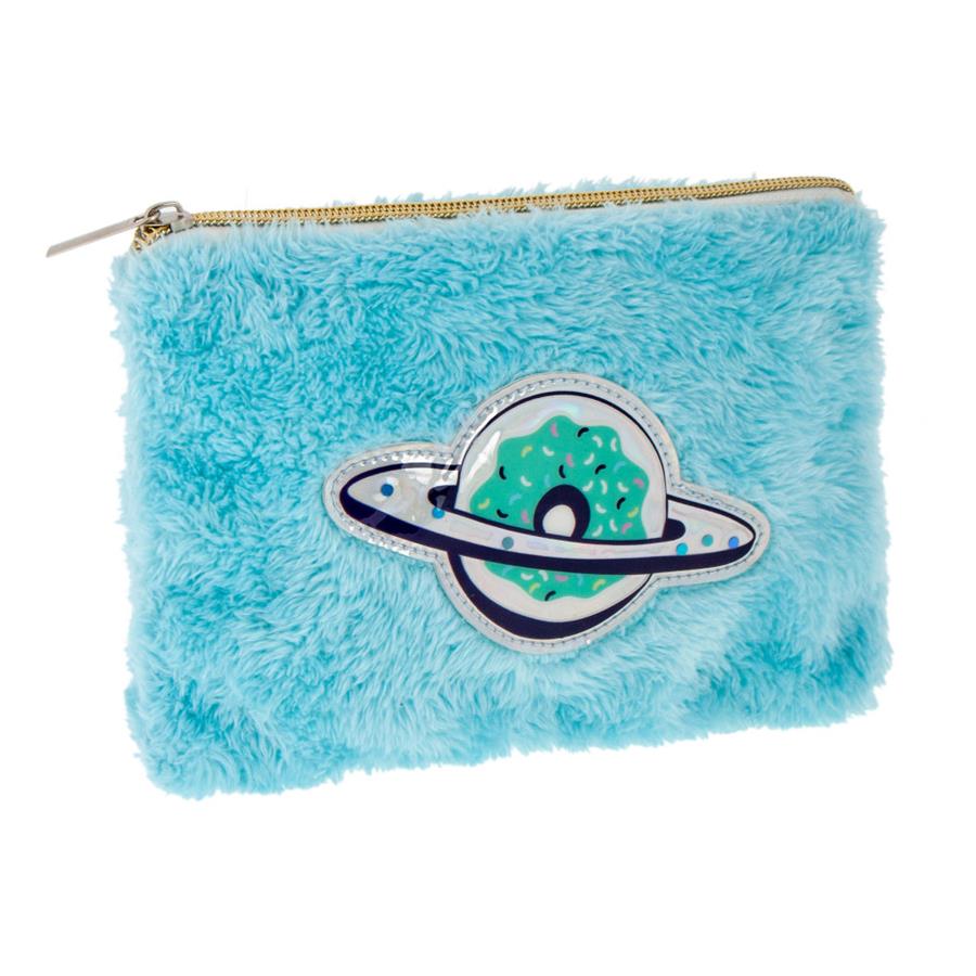 Pluszowy piórnik w kształcie saszetki z zamkiem błyskawicznym. Pomieści niezbędne artykuły piśmiennicze i nie zajmie dużo miejsca w plecaku. Wymiary: 20 x 14 cm