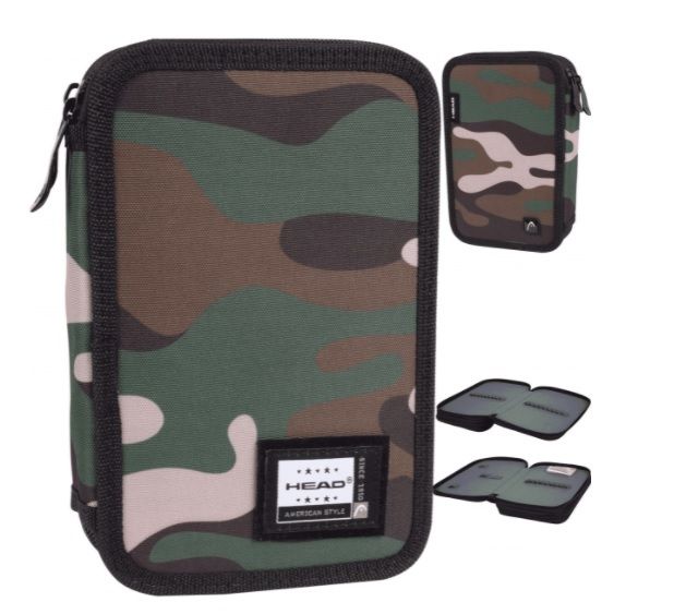 Opis produktuZasady bezpieczeństwaPodwójny piórnik Head z motywem moro powstał z myślą o wszystkich fankach i fanach militarnego wzornictwa. Piórnik został wzbogacony o designerskie czerwone wstążki przy uchwytach od zamków. W szczególności docenią je osoby, dla których świat mody nie skrywa żadnych tajemnic. Piórnik Head nie posiada wyposażenia. Jednak dzięki dwóm pojemnym komorom pomieści niezbędne przybory, w tym kredki, flamastry, ołówki, długopisy i linijki. o 2 komory x