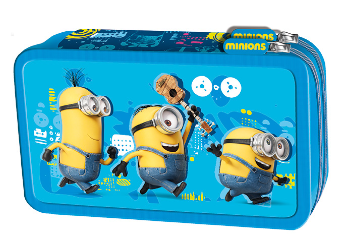 Piórnik podwójny z wyposażeniem Minionki niebieski