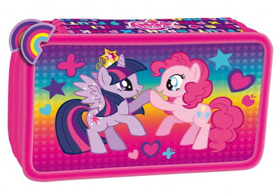 Piórnik dwupoziomowy posiadający dwie oddzielne, zamykane zamkiem błyskawicznym przegrody ułatwiające organizację przyborów szkolnych. Liczne mocowania pozwalają utrzymać porządek w piórniku. Wewnątrz piórnika znajduje się zestaw 10 kredek szkolnych, 10 flamastrów, 2 ołówki HB z gumką, temperówka, linijka, gumka do ścierania, notesik 6,5×10 cm. Wszystkie elementy wyposażenia ozdobione są motywami licencyjnymi korespondującymi z estetyką całego piórnika. Grafika piórnika wykorzystuje najbardziej aktualne motywy licencyjne. Piórnik i jego zawartość wykonane są z materiałów wysokiej jakości.