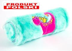 Piórnik tuba z materiału zabawkarskiego (miś) z wyhaftowanym dinozaurem. Produkt Polski.