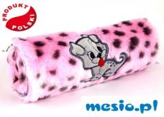 Piórnik tuba z materiału zabawkarskiego (miś) z wyhaftowanym pieskiem. Produkt Polski.
