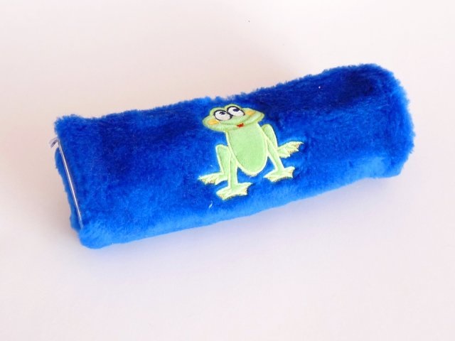 Piórnik tuba z materiału zabawkarskiego (miś) z wyhaftowaną żabką. Produkt Polski.