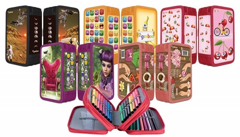 Piórnik szkolny Giimboo 3 komory z wyposażeniem mix