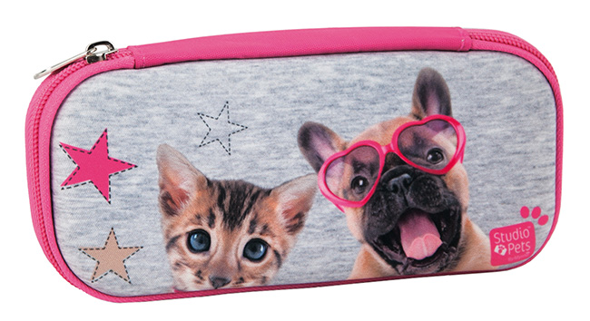 Piórnik bez wyposażenia, w środku klapka z uchwytami na przybory piśmiennicze.