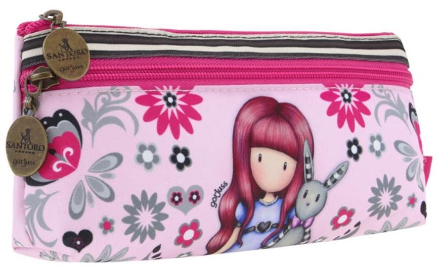 Zawiera dodatkową kieszonkę zapinaną na suwak . Suwak ozdobiony medalionem w stylu antycznego mosiądzu z główką dziewczynki Gorjuss. Zmieszczą się w nim zarówno ołówki i długopisy, a także przybory do szycia czy inne drobiazgi. Wykonany ze szczególną dbałością. Wewnątrz posiada ciekawy wzór w stylowe paski. wspaniały prezent do szkoły lub pracy. x