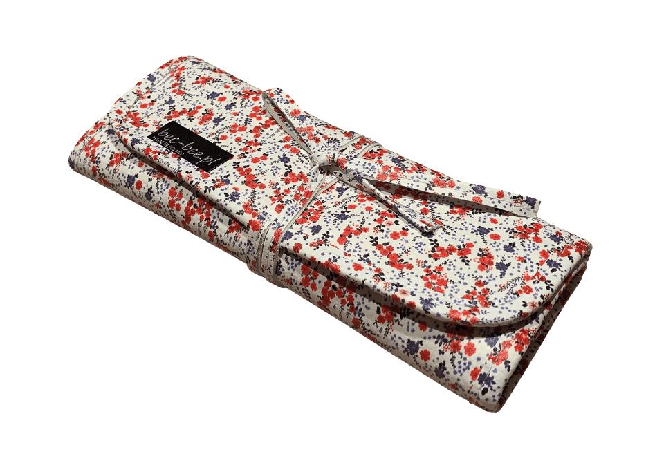 Piórnik zawijany, wykonany z ekoskóry, w oryginalnej kolorystyce, zawiązywany, wnętrze piórnika wyszyte jest przegródkami różnej szerokości, idealny zarówno jako piórnik który pomieści wiele przyborów do pisania jak i etui na pędzle dla dziewcząt uwielbiających wizaż.