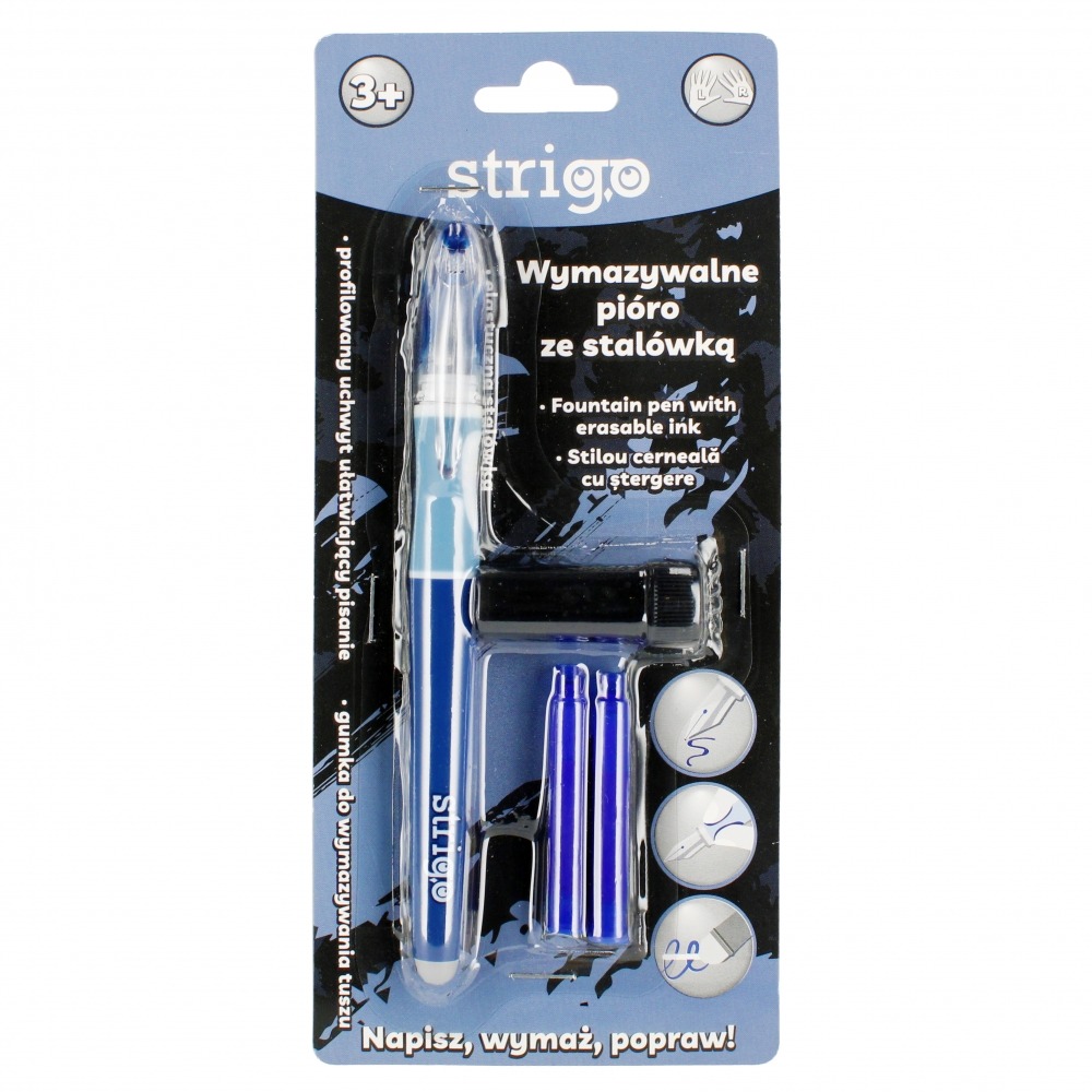 Opis produktuZasady bezpieczeństwaPióro wymazywalne ze stalówką granat STRIGO Wymazywalne Pióro STRIGO to idealne rozwiązanie dla dzieci, które dopiero uczą się pisać. Zobacz, jak Twoje dziecko będzie z radością korzystać z tego pióra, które posiada unikatowy system wymazywania. Błędy i literówki już nie staną się problemem! Dzięki naszemu zaawansowanemu systemowi można bez wysiłku wymazać napisane słowa i literki, aby zacząć od nowa. To świetna funkcja, która pozwoli Twojemu dziecku rozwijać umiejętności pisania bez frustracji.Pióro STRIGO jest lekkie i wygodne w użyciu. x