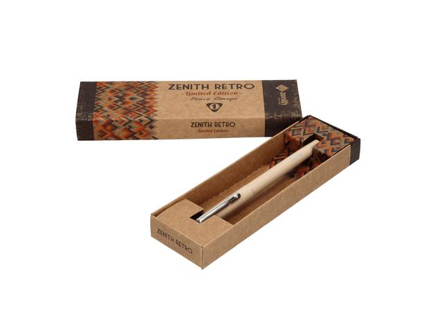 Opis produktuZasady bezpieczeństwaPióro wieczne Zenith Omega Retro z eleganckim wykończeniem, klips, stalówka oraz obrączka korpusu pokryte wysokiej jakości powłoką niklową, stalówka zakończona irydową kulką dla zapewnienia doskonałej jakości i łatwości pisania, wymienne naboje atramentowe. Kolor beżowy. x